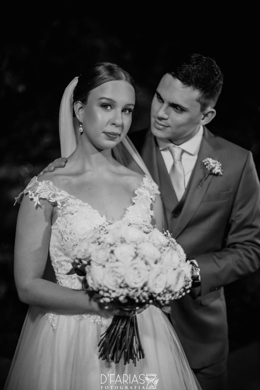 A noiva , Millena, deslumbrante em seu vestido clássico, optou por um coque elegante que destacava sua beleza natural e sofisticação. Cada detalhe do look refletia sua personalidade refinada e o estilo atemporal que desejava para o grande dia.