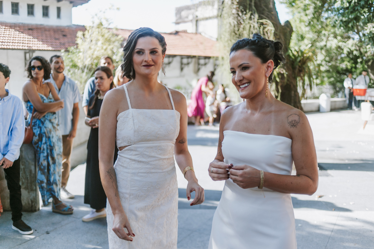 O casamento de Tainá e Maria foi daqueles que transbordam verdade em cada detalhe. Entre sorrisos cúmplices e olhares que se encontravam o tempo todo, as duas viveram um dia leve, cheio de significado e afeto. Não era apenas sobre a cerimônia — era sobre a história que construíram até ali e a decisão de seguir a vida lado a lado. Tainá e Maria celebraram o amor com naturalidade, com alegria e com a certeza de que algumas conexões simplesmente nascem para durar. Um encontro de duas histórias, dois caminhos e um mesmo destino: caminhar juntas dali em diante. 💛