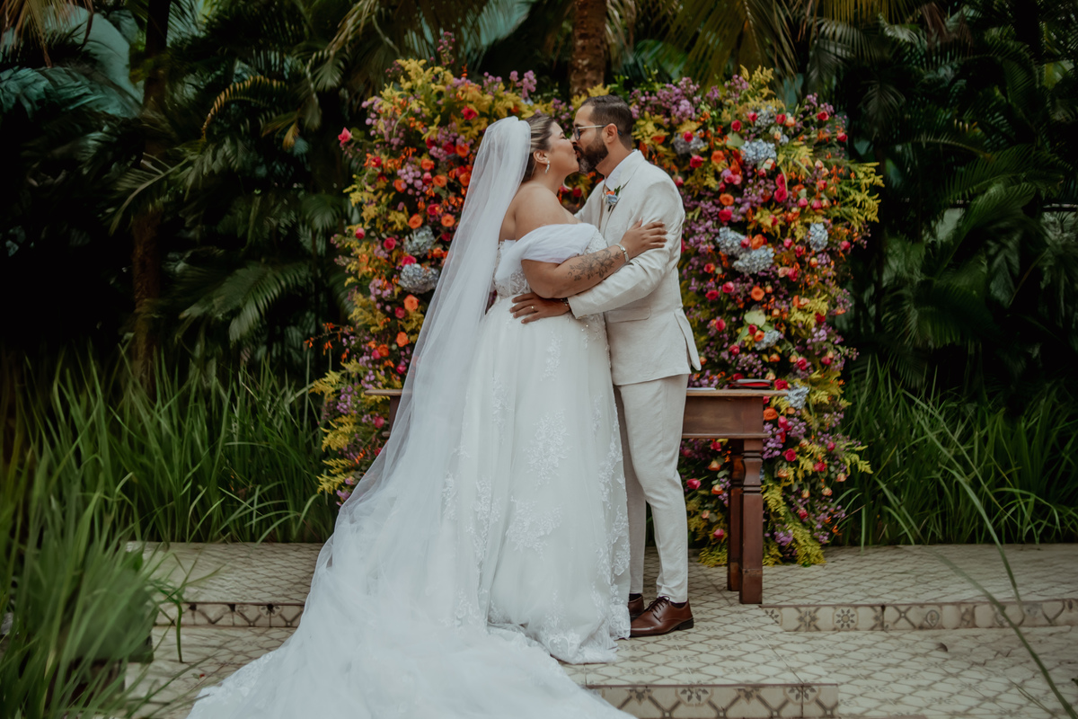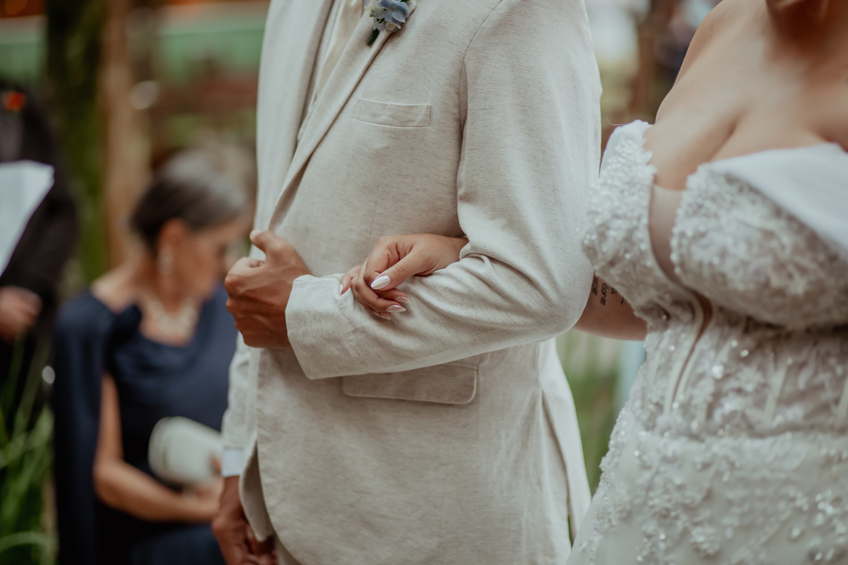 Cercados pelo verde e pela presença de pessoas queridas, os dois viveram uma cerimônia leve, cheia de emoção e sorrisos que apareciam o tempo todo. Cada detalhe refletia exatamente quem eles são: um casal que valoriza os encontros, a família e os momentos simples que se tornam inesquecíveis.