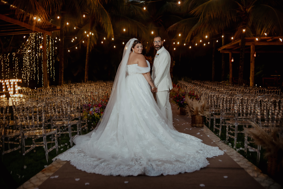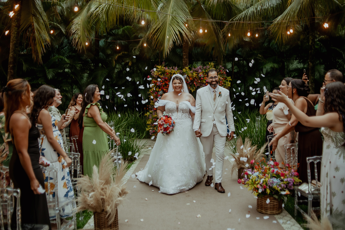 Quando a cerimônia chegou ao fim e eles caminharam juntos entre os convidados, a alegria era evidente. Lorena levantava o buquê celebrando, enquanto Felipe sorria com aquele olhar de quem sabe que está começando um novo capítulo ao lado da pessoa certa.